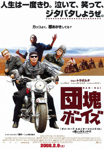 Wild Hogs(団塊ボーイズ)2007年 アメリカ 100分監督:ウォルト・ベッカー製作:マイク・トーリン、ブライアン・ロビンス、トッド・リーバーマン製作総指揮:エイミー・セイアーズ、シャーラ・サンプター・ブリジット脚本:ブラッド・コープランド撮影:ロビー・グリーンバーグ編集:クリストファー・グリーンバリー、スチュアート・パペ音楽:テディ・カステルッチ出演:ジョン・トラヴォルタ、ティム・アレン、マーティン・ローレンス、ウィリアム・H・メイシー、マリサ・トメイ、ジル・ヘネシー、レイ・リオッタ、ケヴィン・デュランド、M・C・ゲイニー、ドミニク・ジェーンズ、ピーター・フォンダ最近単車が欲しいと思っている。それが理由というわけではないのだが「団塊ボーイズ」を観た。歯医者のダグは仕事にも家族にも恵まれているが現状に満足できていない。ダイエット中にも関わらずコレステロールの取りすぎで入院してしまうようなバカなオッサンだ。配管工のボビーは子供たちへの威厳をまったく持たず妻の尻に敷かれる小説家志望の親父。ダドリーは喫茶店で美人な女性にいいとこ見せようとしてアダルトサイトを開いて店内にいかがわしい声を響き渡らせるパソコンオタク。そしてウディは4人の中で最も成功している実業家。スーパーモデルと結婚して皆から尊敬の眼で見られていた。今までは…。実際は3ヶ月前に離婚、自己破産しアルバイトで雇った庭の落ち葉集めの少年に10ドルも渡せないような男だ。4人は冴えないオッサンで、集まってもする話といえば愛車のハーレーダビッドソンと『ワイルド・ホッグス』という4人だけの走り屋の話。そんな現状を旅を通して打開しよう。「俺たちは、まだまだ終わっちゃいないぜ!」こうして太平洋を目指してバイクで向かうのだった。まず「団塊ボーイズ」という邦題だが団塊世代には皆まだ少し早い。気になったのはそれくらいだ。そのほかはずーっと笑いっぱなしだった。馬鹿馬鹿しいんだけどバイクに乗ってる姿は最高にカッコ良い。バイクで走り回るのはアメリカの荒涼とした大地。地平線の向こうまで広がる砂漠地帯、高くそびえる山々などいかにもアメリカな風景には息を呑む。あれだけ広い台地をバイクで疾走するのは気持よさそうだし、何より走り甲斐がありそう。日本でツーリングをするとデコボコと先の見えない道を走るようで、こちらのほうがいかにも「団塊ボーイズ」な気もする…笑展開的にはいかにもアメリカのコメディという感じ。この先どうなるんだろうって読めるんだけど、面白いから許しちゃう。こういうシンプルで馬鹿馬鹿しいアメリカンコメディ久々に観たけど、やっぱり面白い。それに馬鹿馬鹿しさの向こうに応援するメッセージ性も併せ持ってる。それがいかにもアメリカ的で一時期嫌だったんだけど、やっぱなかったらなかったで寂しくなるんだよね。余計なこと言ったけど純粋に面白かった。